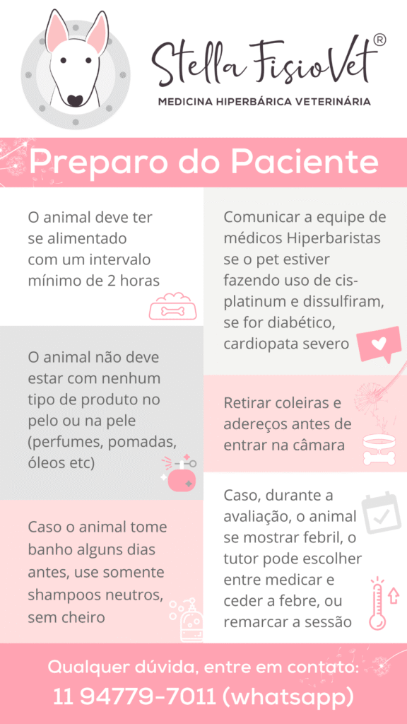 A câmara hiperbárica da Stella FisioVet® atende principalmente animais de pequeno e médio portes, como cães e gatos, mas sua experiência também inclui casos diferentes que passaram pela câmara com segurança. Cada tratamento é planejado de acordo com as necessidades específicas do paciente, garantindo eficácia e conforto durante a terapia.